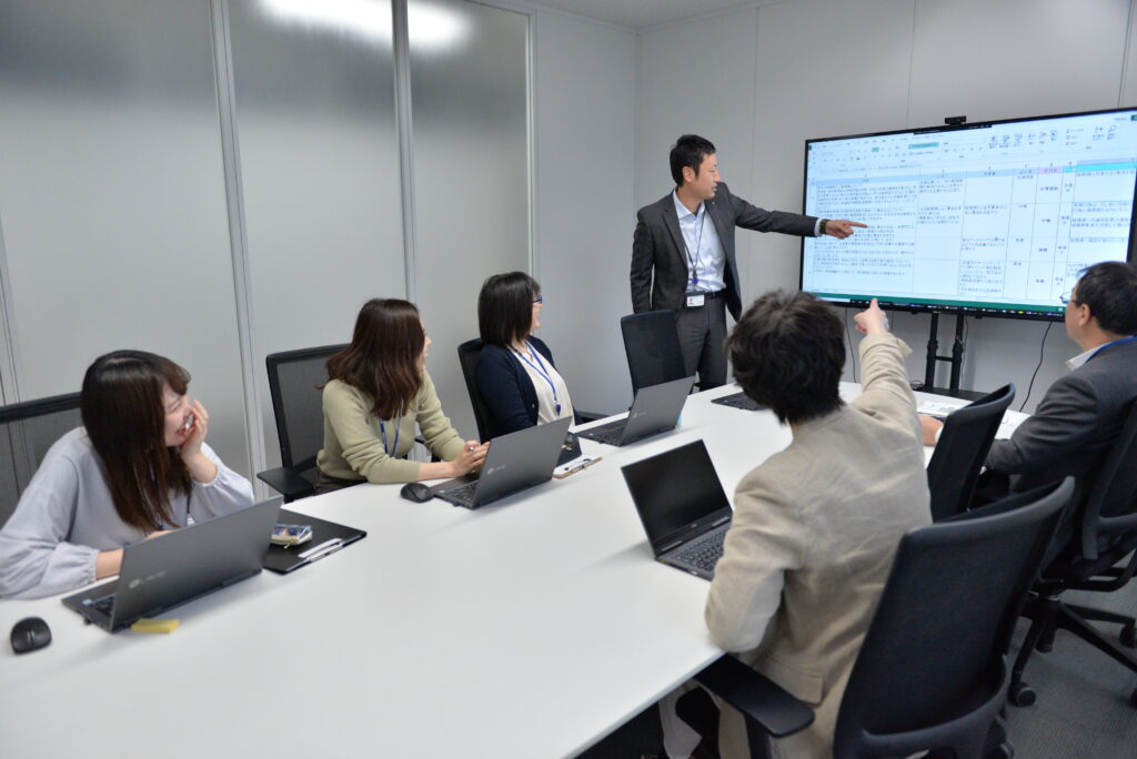 新卒・中途採用を問わず、入社後のフォロー期間がどのくらいあるのか不安、という方は多いのでは? ワイズマンでは、新入社員には1年間O J T(=On the Job Training)担当がつき、サポートする制度が整っているのだそう。O J T担当を任された社員も、適切な指導ができるよう研修を受けているといいます。