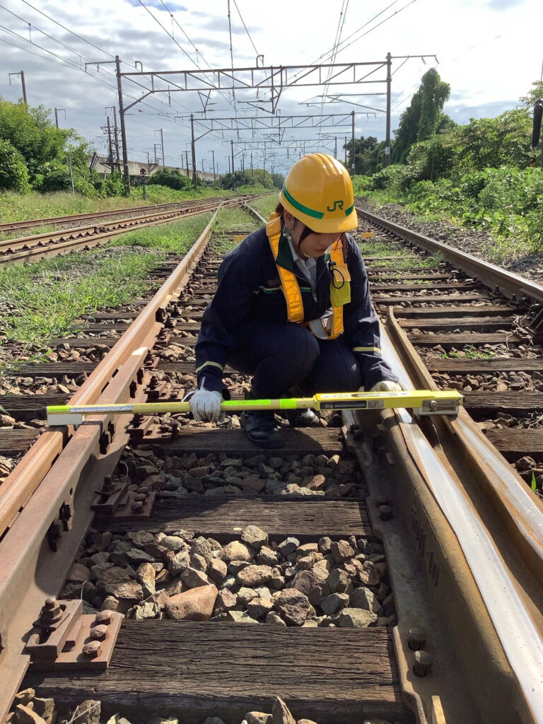 「保線が支えなければ列車は安定した走行ができませんから、その安全を背負っているという責任の重さを常に感じています。だからこそ、検査の見落としがないよう厳重にチェックを重ねますし、少しでも違和感を覚えたら必ず共有することを心がけています」。
