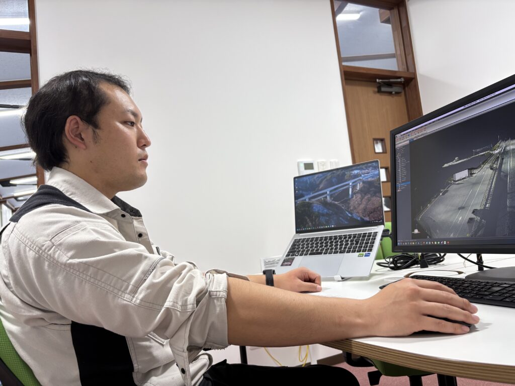 自分の現場も管理しつつ、別の現場ではドローンを飛ばし、違う現場では機器の操作を根気よくレクチャーする。体がいくつあっても足りませんが、「大事なのはすべての現場にICT化を普及すること」と、奥地さんは強調します。